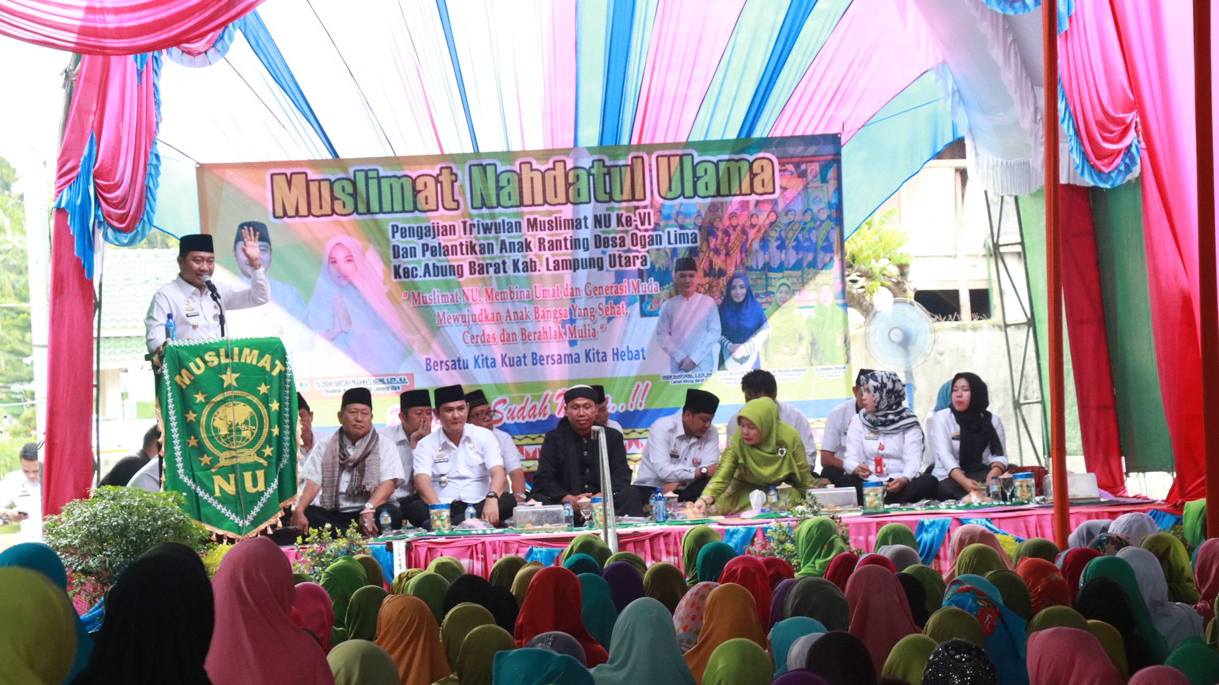 KOTABUMI -Bupati Lampung Utara(Lampura) Hi. Agung Ilmu Mangkunegara menghadiri acara Pengajian Triwulan Pimpinan Anak Cabang Muslimat NU di Desa Ogan Lima Kecamatan Abung Barat Lampura.