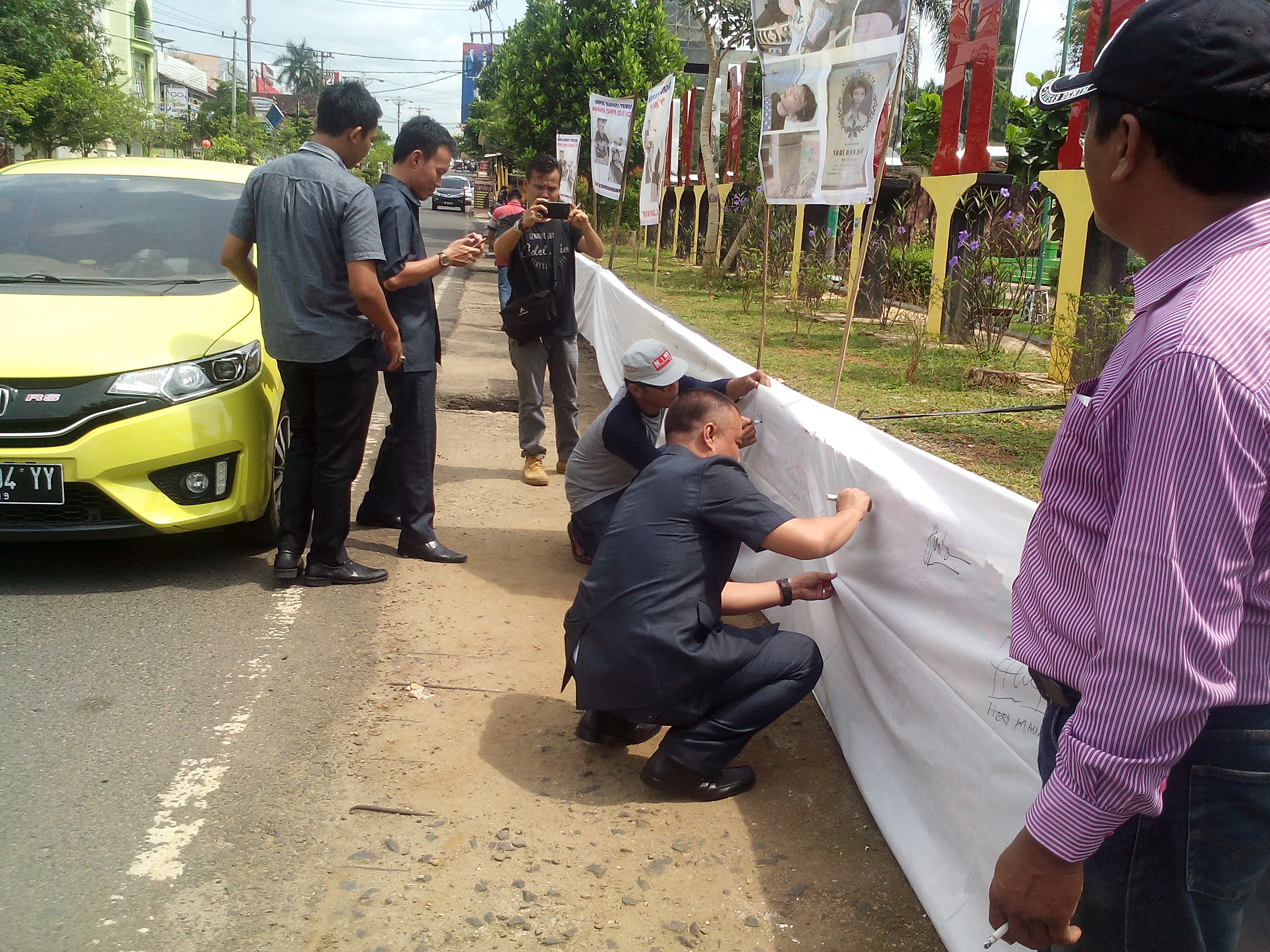 Karenanya disikapi dengan cara setelah penuh tandatangan akan diganti dengan kain putih yang baru. “Kegiatan ini murni merupakan solideritas dan kepedulian atas kasus yang menimpa Yogi. Tidak ada unsur politik didalamnya. Dalam hal ini kami ingin mensupport aparat kepolisian agar dapat segera mengungap kasus ini hingga keakarnya. Siapa saja yang terlibat dapat mempertanggungjawabkan perbuatannya secara hukum,” jelas Firman, Senin(23/4).