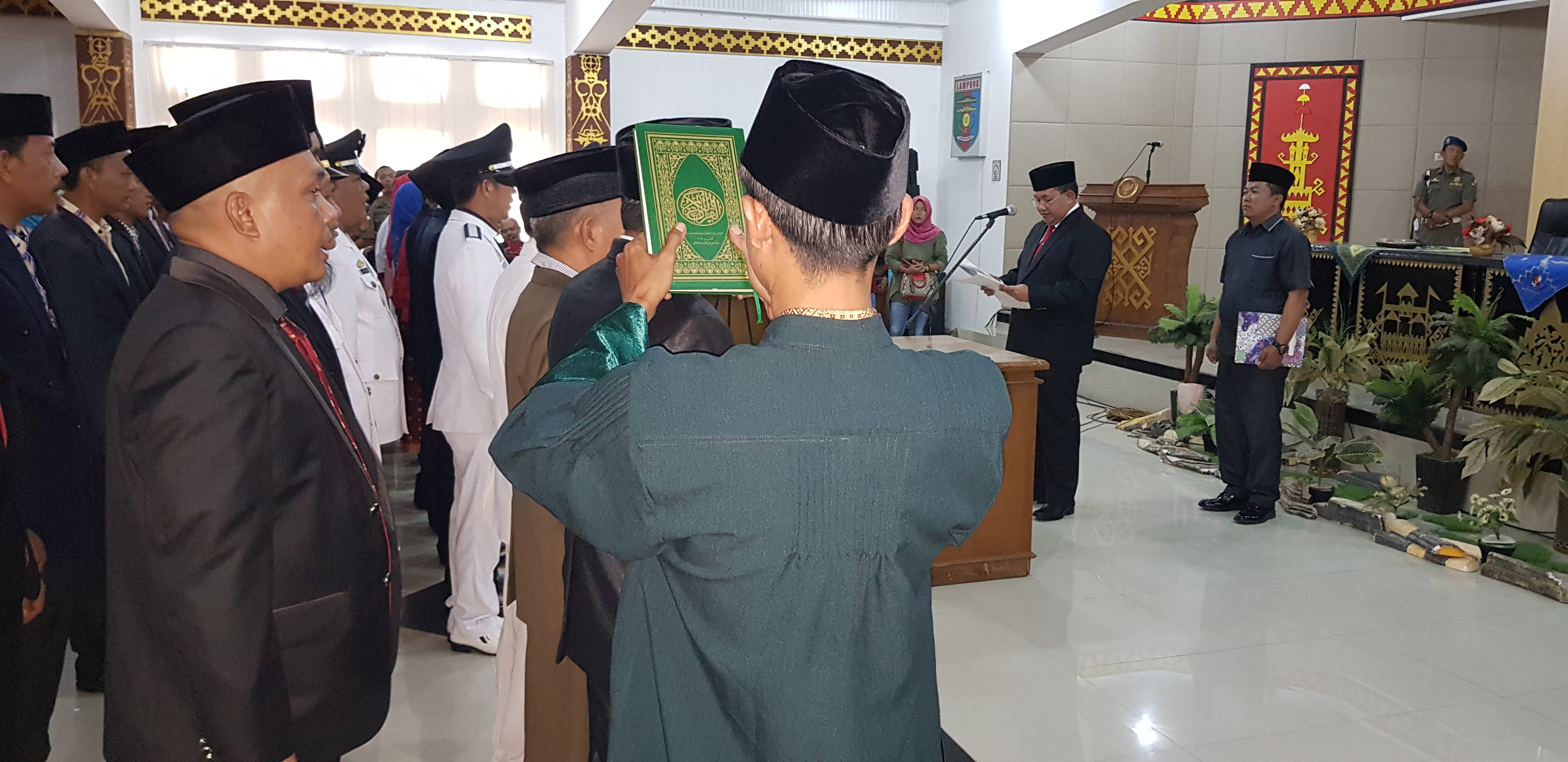KOTABUMI–Sebanyak 97 pejabat esselon III dan IV di lingkungan Pemerintah Kabupaten(Pemkab) Lampung Utara(Lampura)dilantik kembali oleh Plt. Bupati Sri Widodo, di ruang Tapis Pemkab setempat, Kamis(21/6).
