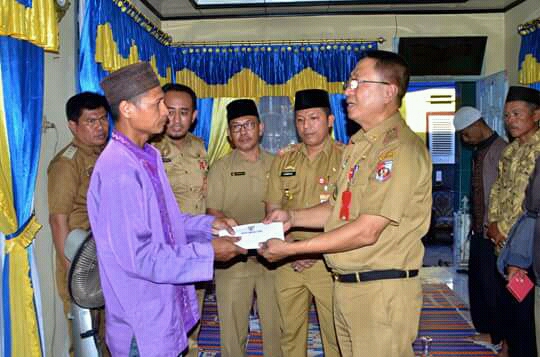 Foto IST Caption : Plt. Asisten II Pemkab Lampura H. Syahrizal Adhar bersama Kasi Haji H. Herman Ali saat menyerahkan bantuan sosial ke rumah duka, Senin (3/9).