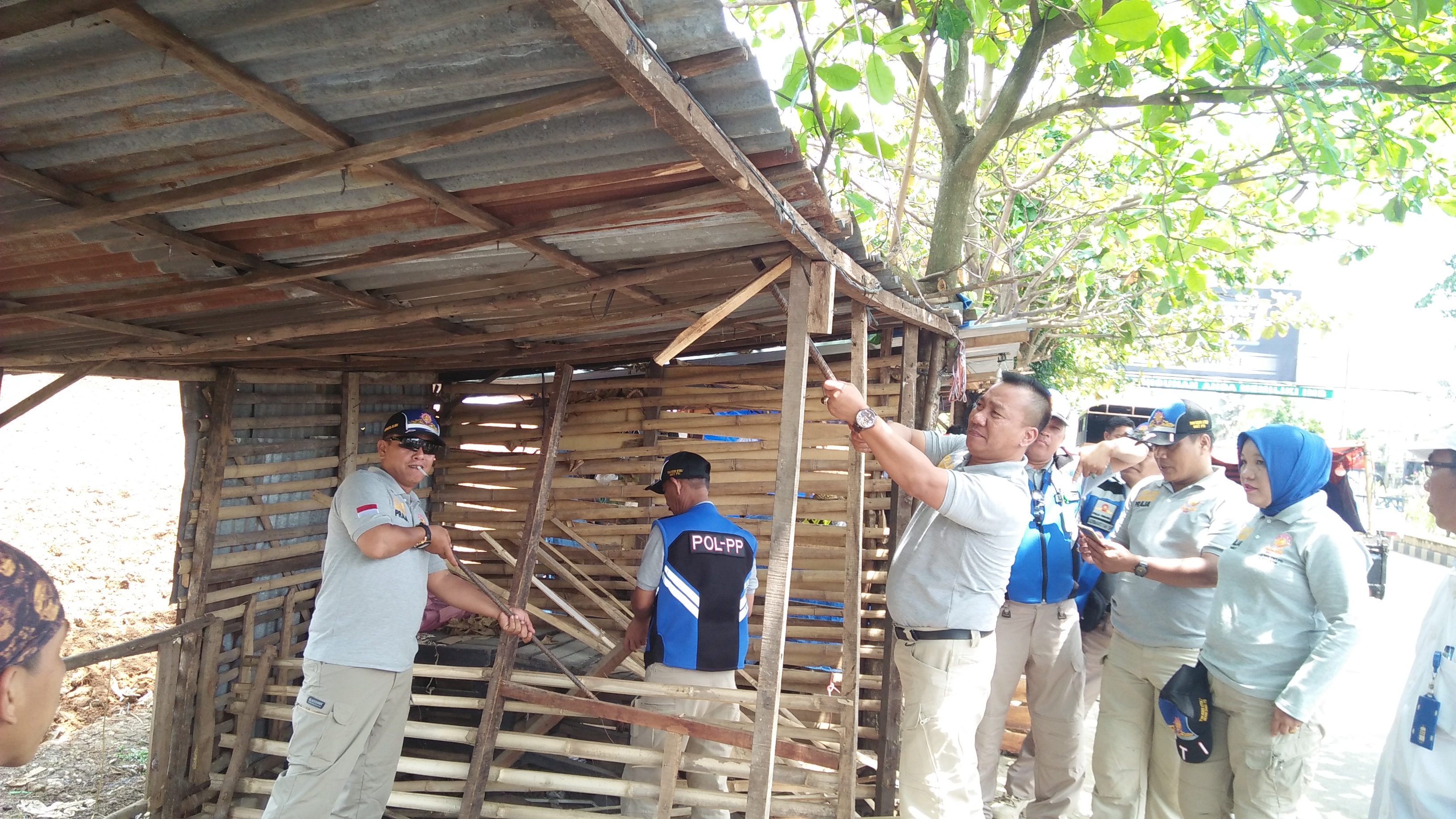 KOTABUMI – Satuan Polisi Pamong Praja(Sat Pol-PP), bersama dengan Dinas Perdagangan(Disdag) Lampung Utara(Lampura), akhirnya membongkar sejumlah kios buah-buahan yang berada di sepanjang jalan Jendral Soedirman Kotabumi, tepatnya samping rumah jabatan ketua DPRD Lampura, Rabu (5/9).