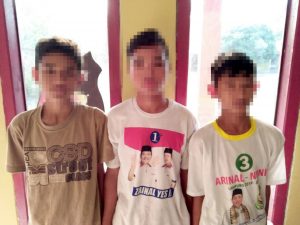 Tiga tersangka yakni DI (12), HC (15), dan HA (13) diamankan sesuai dengan