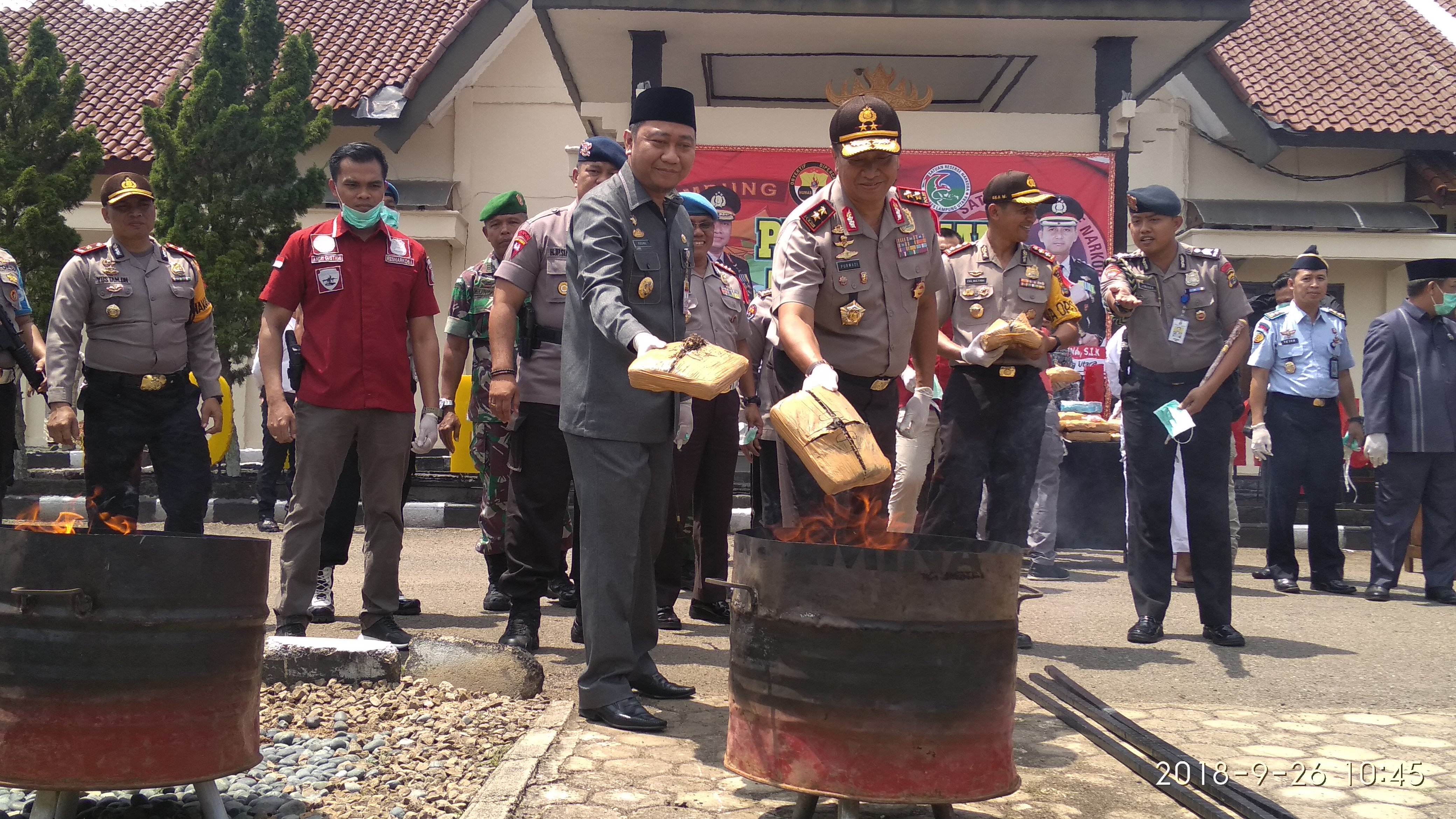 Saat pemusnahan BB tersebut, Kapolda didampingi Kasubag Humas AKBP Sulistianingsih, Kapolres Lampura AKBP Eka Mulyana, beserta jajarannya, Bupati Lampura Hi. Agung Ilmu Mangkunegara beserta jajarannya, Ketua DPRD Hi. Rachmat Hartono, dan para tokoh agama, tokoh adat, tokoh pemuda, Forkopimda kabupaten setempat.