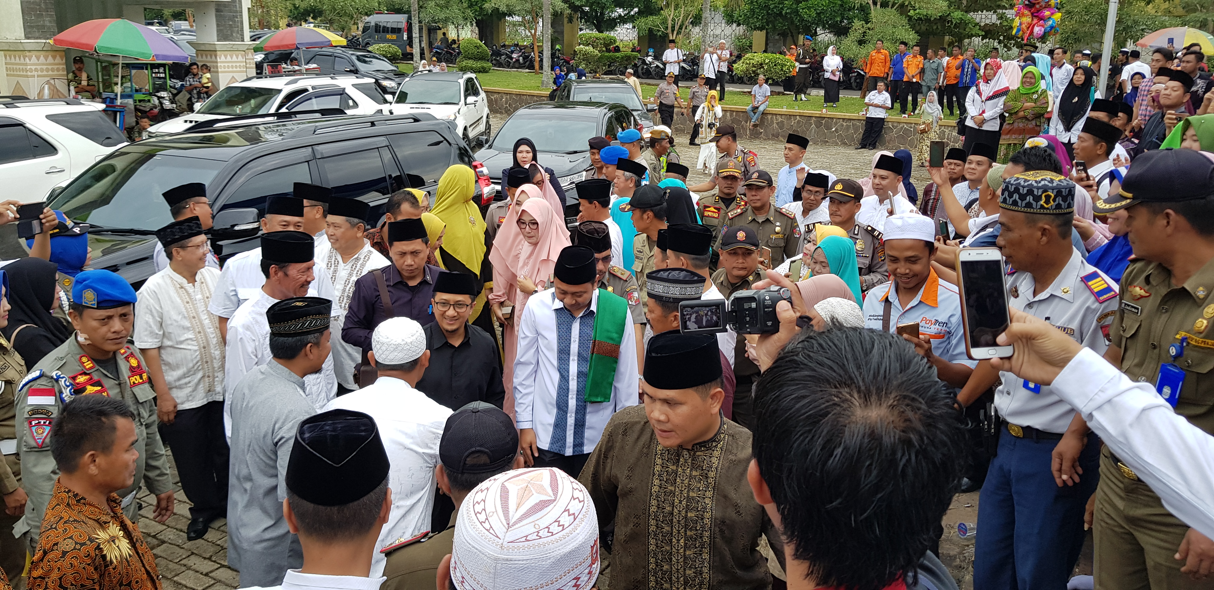 KOTABUMI-Ribuan Masyarakat dari berbagai daerah yang ada di Kabupaten Lampung Utara(Lampura), Rabu (5/12) memadati Halaman Islamic Center Kotabumi untuk mendengarkan tausiah yang disampaikan oleh Ustadz Yusuf Mansur dari Jakarta.