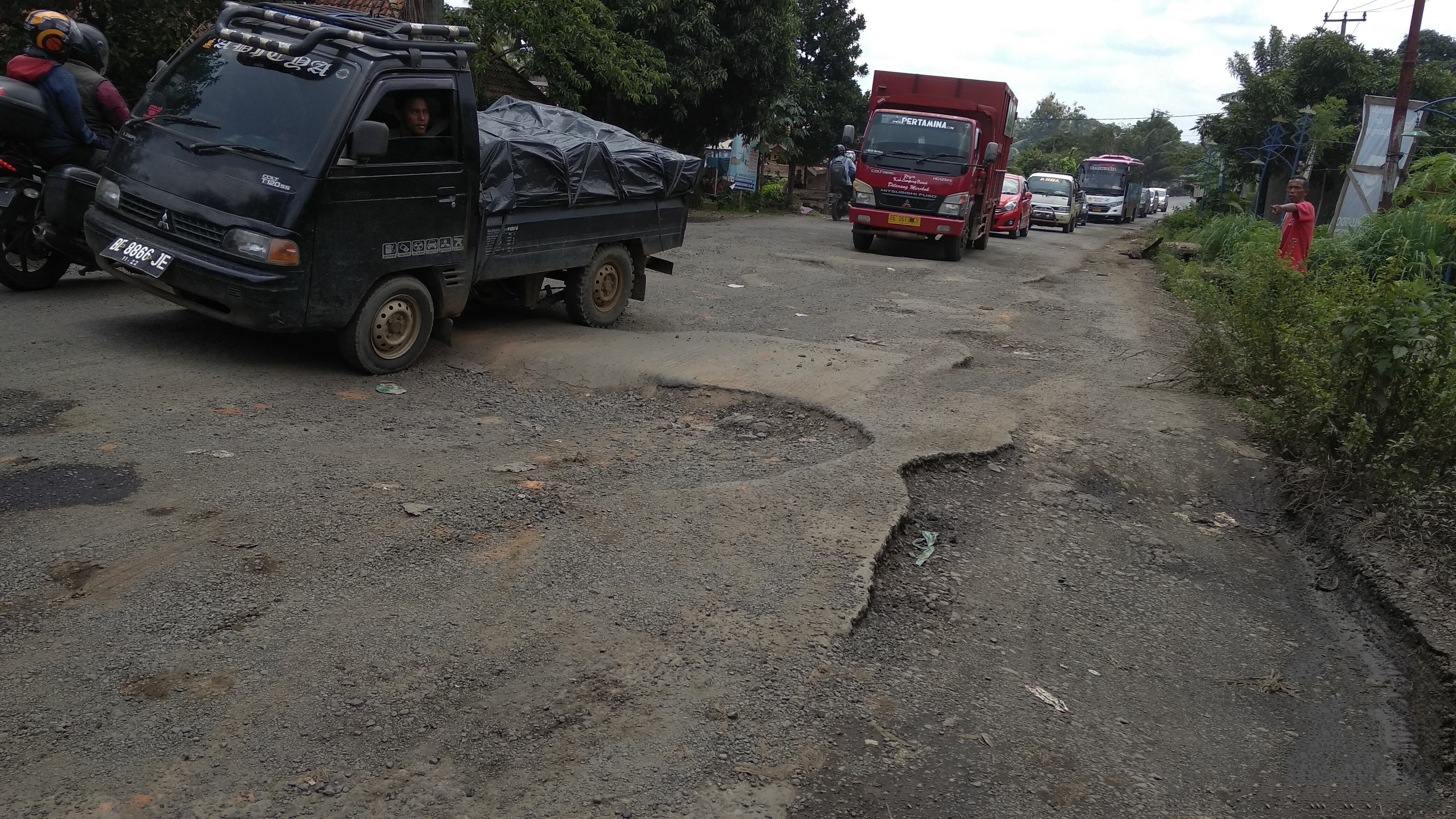 Akibat banyaknya jalan yang rusak tersebut, arus lalulintas menjadi tersendat, tidak hanya itu, banyak juga terdapat pelaku pemalakan yang acap kali mangkal di di seputaran jalan yang rusak.