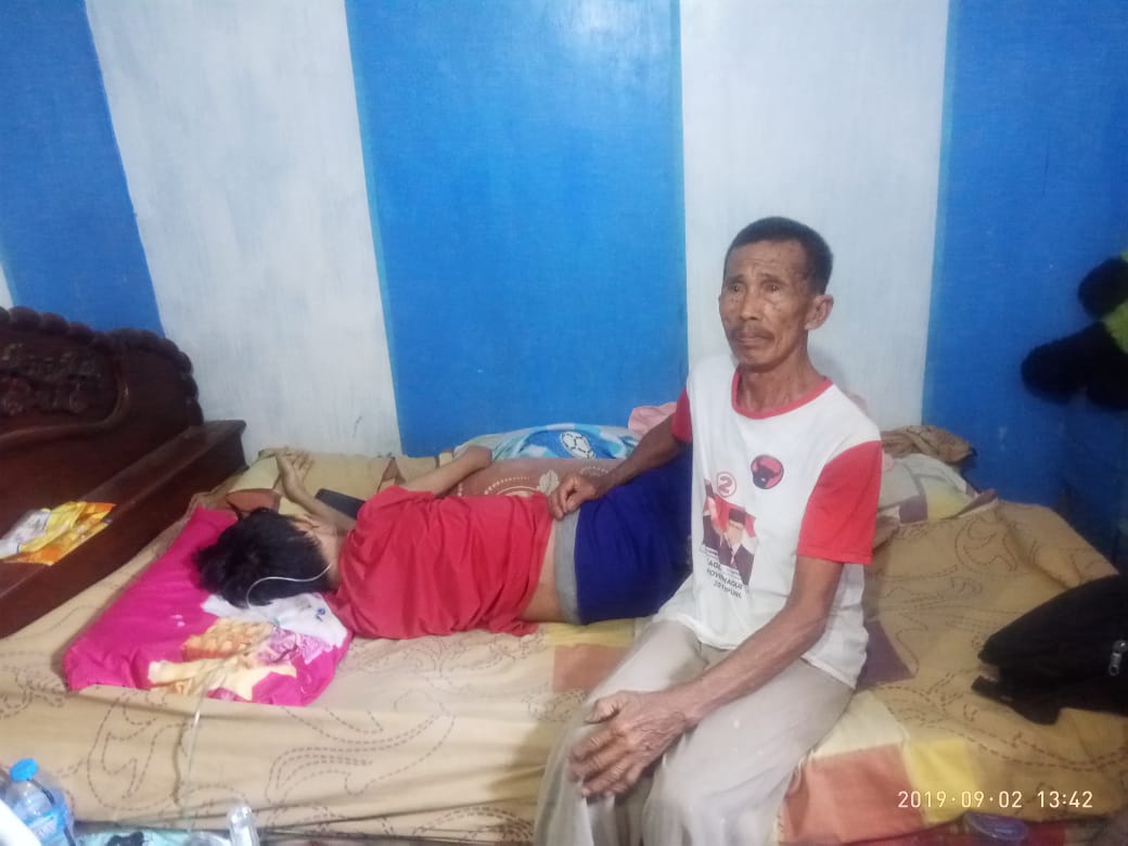 KOTABUMI — Miris nasib yang dialami Didik Adyanto(20) buah hati dari Erham Efendi(71) warga Kelurahan Kelapatujuh, Kecamatan Kotabumi Selatan, pasalnya, akibat penyakit komplikasi tumor, kanker, tiroid dan liver yang dideritanya, dirinya kini terbaring lemah dan tak berdaya.