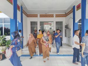 Caption : Tampak sejumlah pegawai meninggalkan kantor DPKA Lampura, setelah kehadiran para kontraktor, Selasa (28/1).