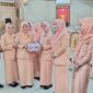 Acara pisah sambut itu diakhiri dengan pemberian cendera mata dari dewan guru kepada Emirita. (ndo/fer/her)
