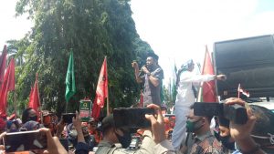 Dihadapan ribuan massa yang hadir di halaman gedung DPRD setempat, menyampaikan pernyataan sikap yang isinya yaitu, meminta presiden agar dapat menolak dan mencabut semua RUU yang di dalamnya memuat pelemahan Pancasila. Meminta DPR RI mencabut RUU HIP terutama partai yang menginisiasi RUU tersebut.