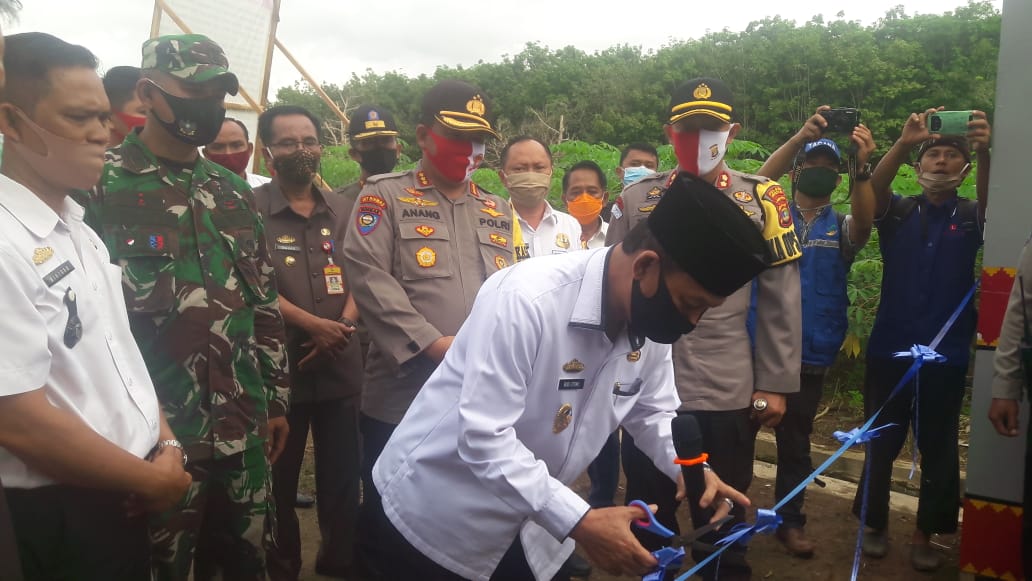 KOTABUMI — Pelaksana tugas(Plt) Bupati Lampung Utara(Lampura) H. Budi Utomo, meresmikan Kampung Tangguh Nusantara(KTN) yang berada di Desa Sumber Arum Kecamatan Kotabumi, Rabu(15/7). Peresmian ditandai dengan pengguntingan pita di pintu gerbang KTN di Desa Sumber Arum, serta pengecekan beberapa posko.