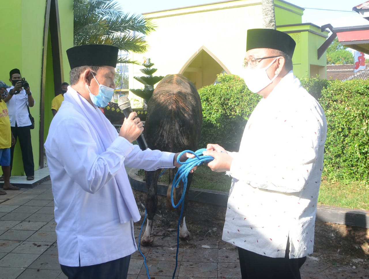 Usai Shalat Ied, dilanjutkan dengan penyerahan hewan Qurban berupa satu ekor sapi kepada panitia Qurban Masjid An-Nur oleh Plt. Bupati Lampura.