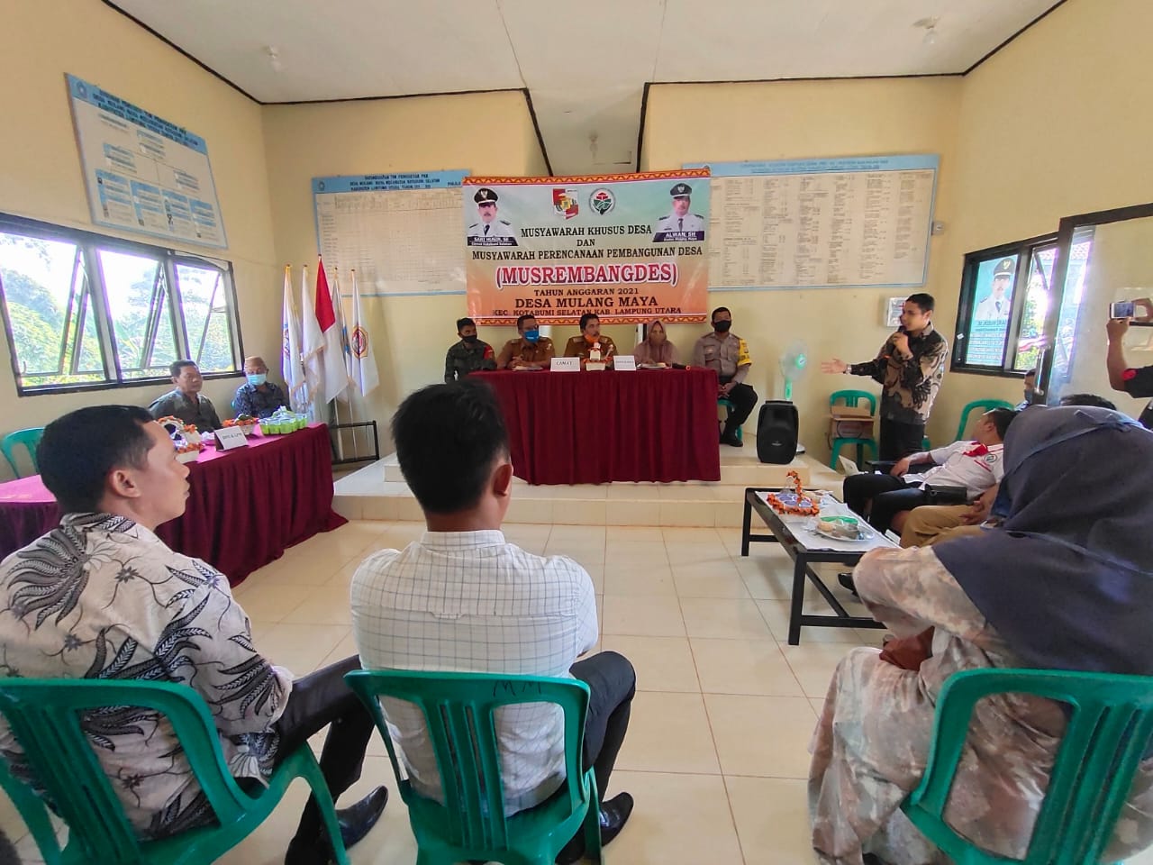 Foto IST For Radar Kotabumi  Caption :  Serda Supriyanto, mendampingi Camat Kotabumi Selatan, Sarihusin, saat menghadiri Musrenbangdes Mulangmaya, Kecamatan Kotabumi Selatan, pukul 09.00 WIB, Senin (3/8).  Perbesar