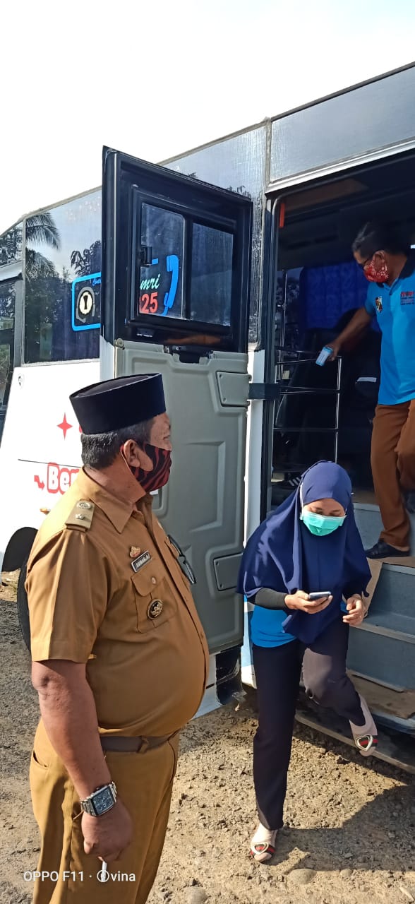 Selain warga yang melintas kendaraan pribadi atau angkutan umum seperti mobil Damri yang selalu melewati desa Buring Kencana ikut dipriksa. Selain penumpang, sopir dan kondektur diperiksa suhu tubuh. Kemudian mobil tersebut disemprot disinspektan.