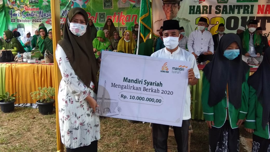 Penyerahan bantuan telah disampaikan oleh Branch Manager Mandiri Syariah KCP Kotabumi-Lampung, Rosi Dahlia kepada Ketua Dewan Kemakmuran Masjid Al-Hidayaat di arena peringatan Hari Santri Nasional, Kamis(22/10) lalu yang terpusat di Desa Subik Kecamatan Abung Tengah.