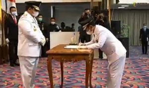 “Saya percaya saudara menjalankan tugas sebaik-baiknya sesuai tugas yang diberikan,” ujar Arinal saat membacakan kata pelantikan. (rnn/her)