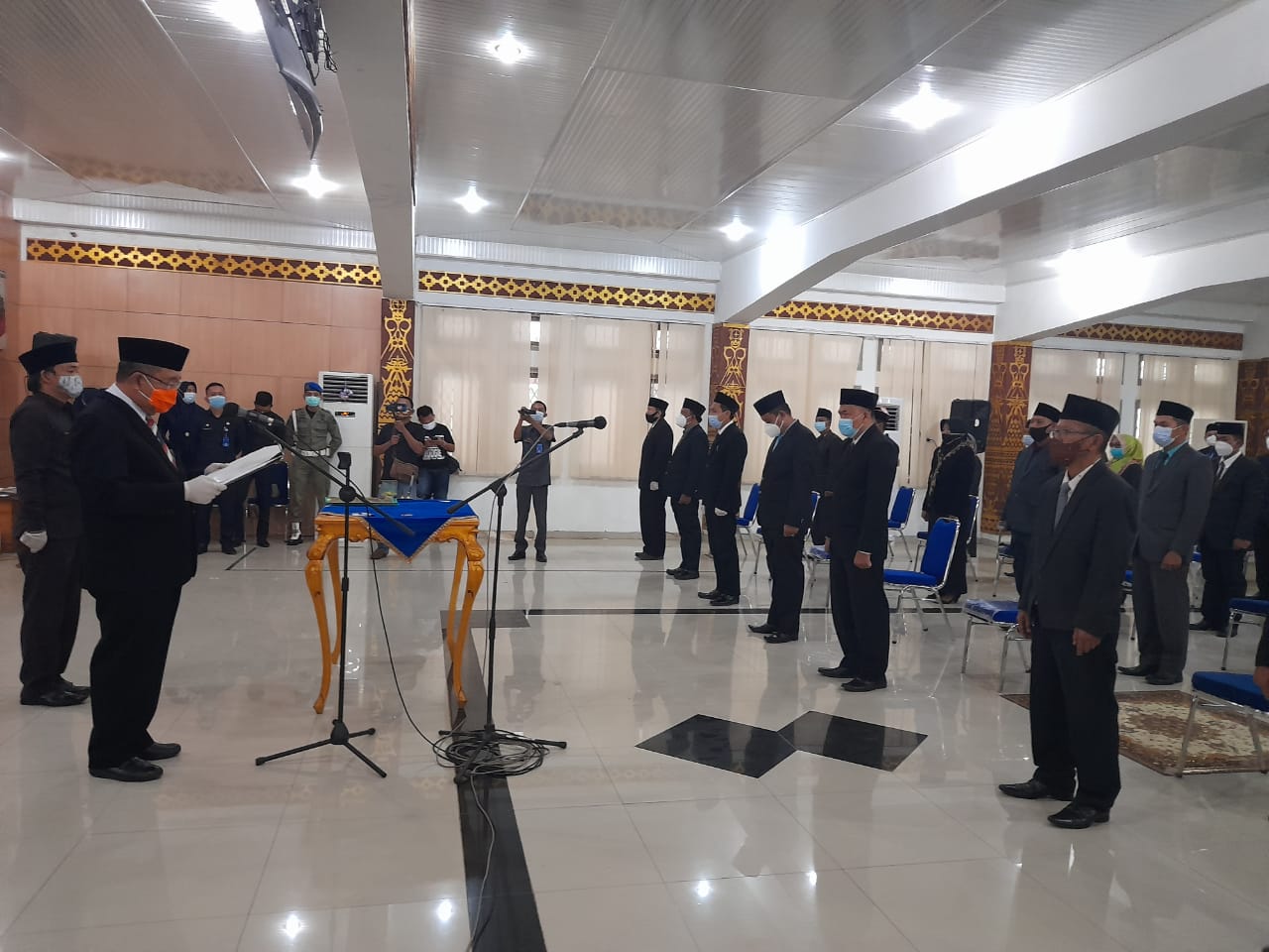 Oleh karena itu, dalam rangka tertib administrasi penyelenggaraan pemerintahan dan pembangunan, khususnya bagi yang bertugas di Badan Perencanaan Pembangunan Daerah (Bappeda), Badan Pengelola Keuangan dan Aset (BPKA), Badan Kesatuan Bangsa dan Politik (Kesbangpol), Dinas Pendidikan dan Kebudayaan, Dinas Pekerjaan Umum dan Penataan Ruang (PUPR), dan Dinas Perumahan dan Kawasan Pemukiman (Disperkim), dilakukan pelantikan kembali. “Para pejabat itu kembali dilantik dan diambil sumpahnya untuk menduduki jabatan sebagaimana perubahan nomenklatur yang tertuang dalam Perbup Nomor 76 Tahun 2020 tersebut,”ucap Lekok, kemarin(12/1).
