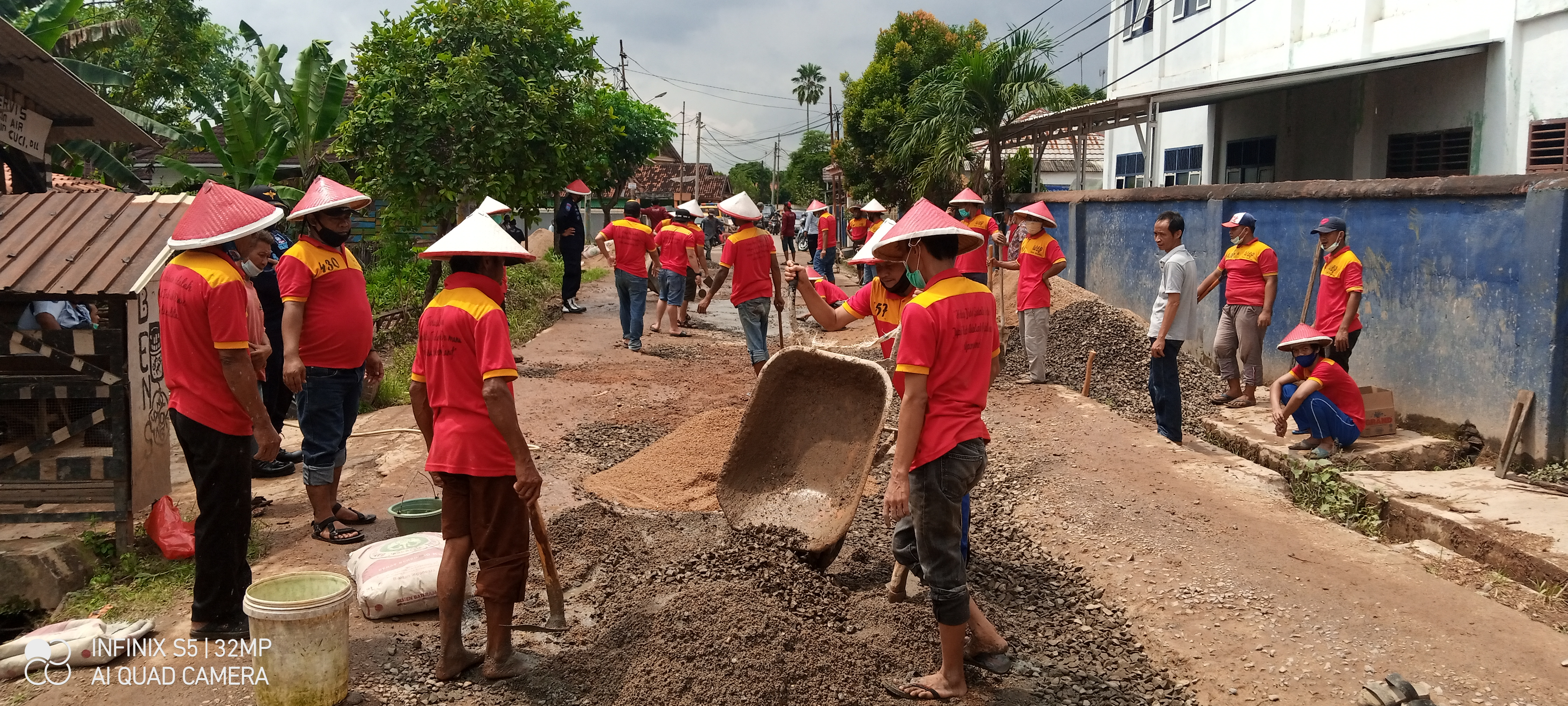 KOTABUMI — Prihatin dengan kondisi jalan yang tampak rusak parah di sejumlah titik yang ada di jalan lingkar Kelurahan Kotabumi Tengah, Kecamatan Kotabumi, Kabupaten Lampung Utara (Lampura), membuat jajaran Kementrian Hukum dan Hak Asasi Manusia (Kemenkumham), beserta jajaran pengurus Persatuan Wartawan Indonesia (PWI) Kabupaten Lampura, bergandengan tangan dan saling bersinergi untuk bahu-membahu memperbaiki jalan yang tampak rusak parah tersebut, Rabu (10/3), sekira pukul 10.00 WIB.