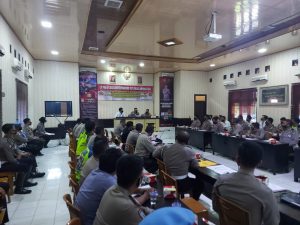 Kabag Ops Polres Lampura Kompol Hadi Sutomo dalam paparannya menyampaikan materi Operasi Keselamatan Krakatau 2021 melalui paparan agar anggota yang terlibat memahami tugas masing-masing.