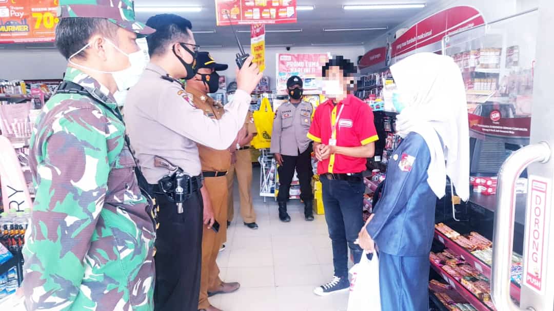 KOTABUMI — Satuan Tugas (Satgas) Covid-19 Kecamatan Bunga Mayang, langsung mendatangi retail modern yang ada di desa Mulyorejo, Senin (24/5), sekiranya pukul 11.00 WIB. Kedatangan tim Satgas itu untuk memberikan teguran secara langsung kepada karyawan ditoko modern tersebut agar menerapkan protokoler kesehatan (prokes). Langkah itu diambil setelah mengetahui adanya oknum karyawan ditempat itu yang tidak mengenakan maskes saat melayani pembeli.