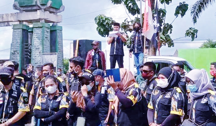 ”Kami minta pak bupati segera berhentikan Kepala Desa Beringin karena terindikasi melakukan sejumlah penyimpangan atau pelanggaran,” tegas Sekretaris GMBI Lampura, Imausyah saat berunjuk rasa di kantor Pemkab Lampura, Kamis (27/5).