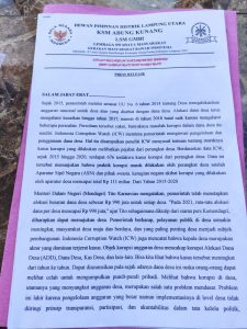 Bupati Lampura Diminta Berhentikan Kades Beringin