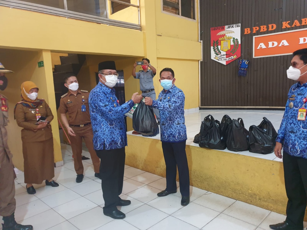 Pemkab Lampura Bagikan 150 Paket Sembako Dari Dompet Aparatur Sipil Peduli Covid-19
