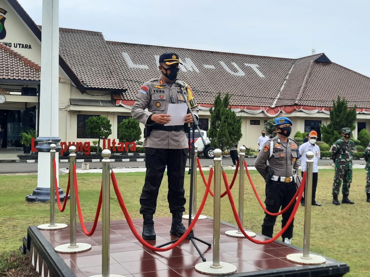 Dalam amanatnya Kapolres menyampaikan, saat ini Kabupaten Lampura masih dalam masa pandemi Covid-19, sehingga membutuhkan kerja keras dari segala aspek dalam menekan penyebaran Covid-19.