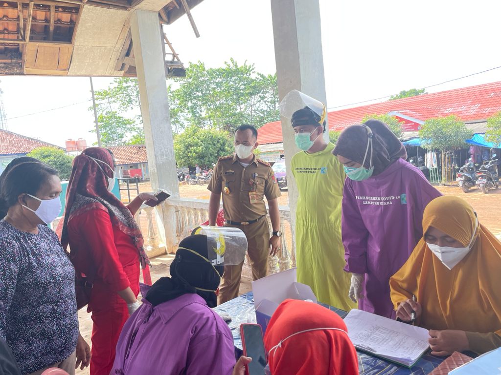 KOTABUMI-Pemerintah Kabupaten(Pemkab) Lampung Utara(Lampura) tak ingin kecolongan dalam penanganan penyebaran Covid-19 di tempat yang biasa ramai di kunjungi Masyarakat setiap harinya, Dinas Perdagangan bekerjasama dengan Dinas Kesehatan dan Satgas Covid-19 melakukan Vaksinasi serta Swab di tiga Pasar Tradisional yang ada di Bumi Ragem Tunas Lampung.