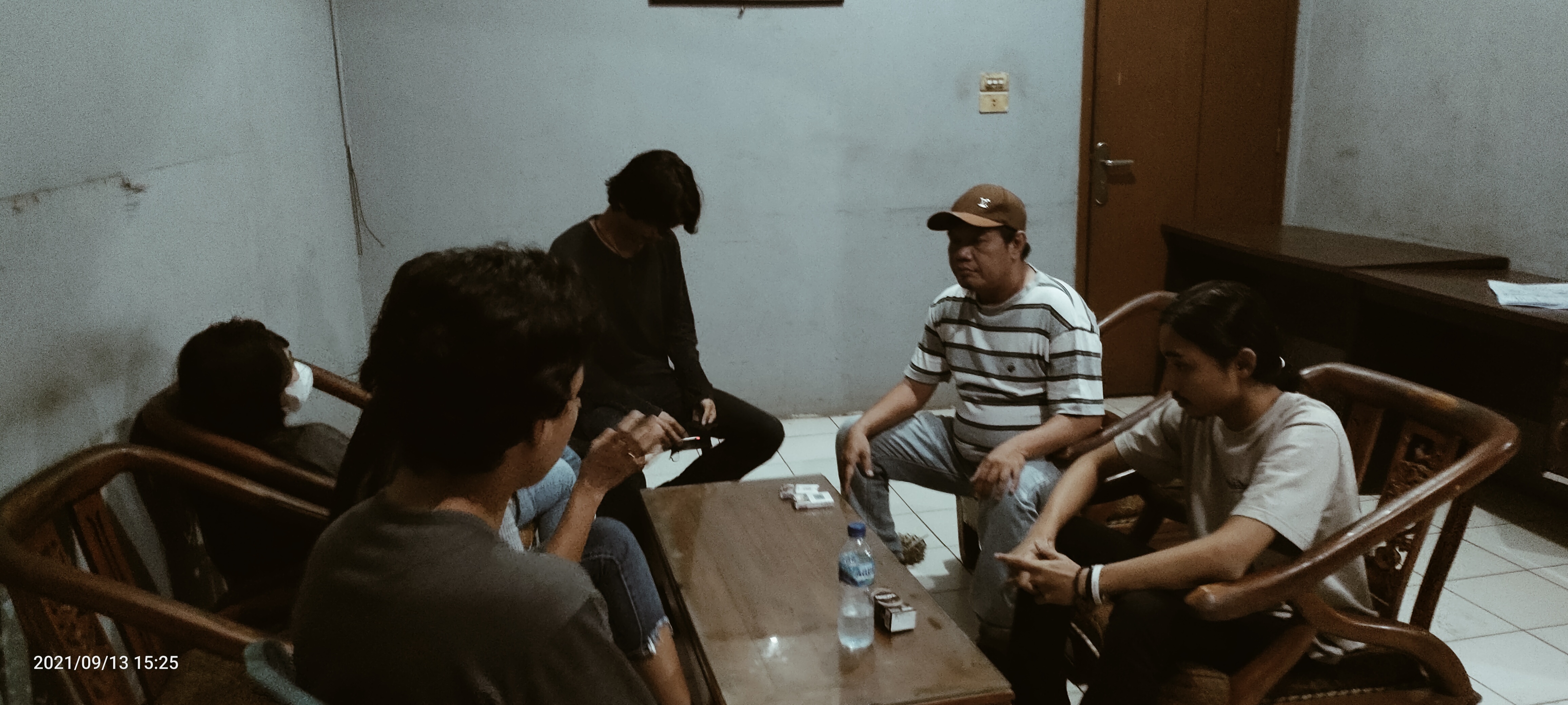 Foto Fernando Ari Caption : Pimred Radar Kotabumi, Riduan, saat menerima klarifikasi eks Kasir salah satu karaoke di Lampura terkait laporan dugaan penganiayaan di Kantor Radar Kotabumi, Senin(13/9)