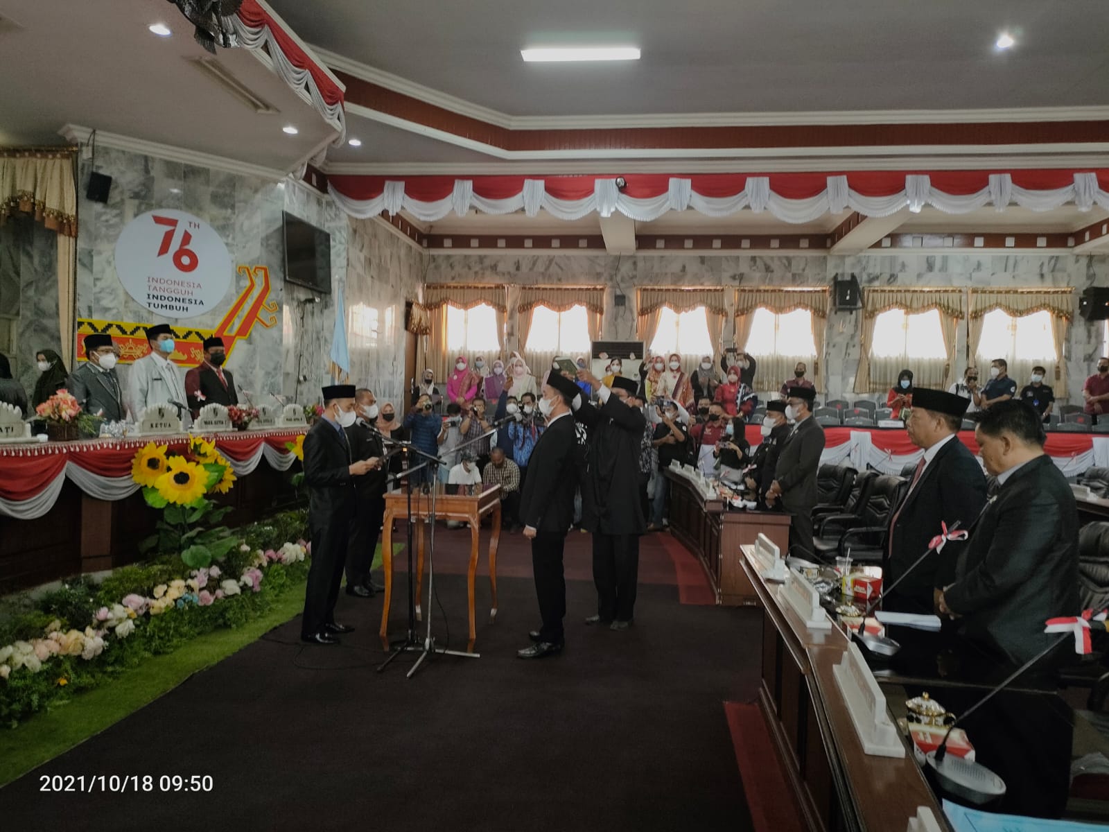 KOTABUMI–Satu anggota Dewan Perwakilan Rakyat Daerah (DPRD) Kabupaten Lampung Utara (Lampura), diambil sumpah jabatannya, dalam rapat istimewa pergantian antar waktu (PAW) di Partai Demokrasi Indonesia Perjuangan (PDIP) disisa masa jabatan 2019-2024, Senin, (18/10).