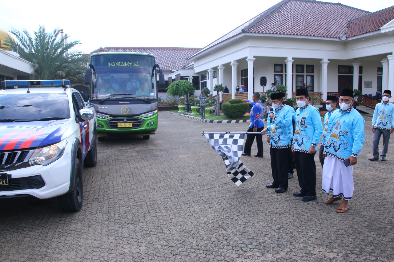 Bupati Lampura H. Budi Utomo melepas secara langsung para Khafilah MTQ asal Bumi Ragem Tunas Lampung.