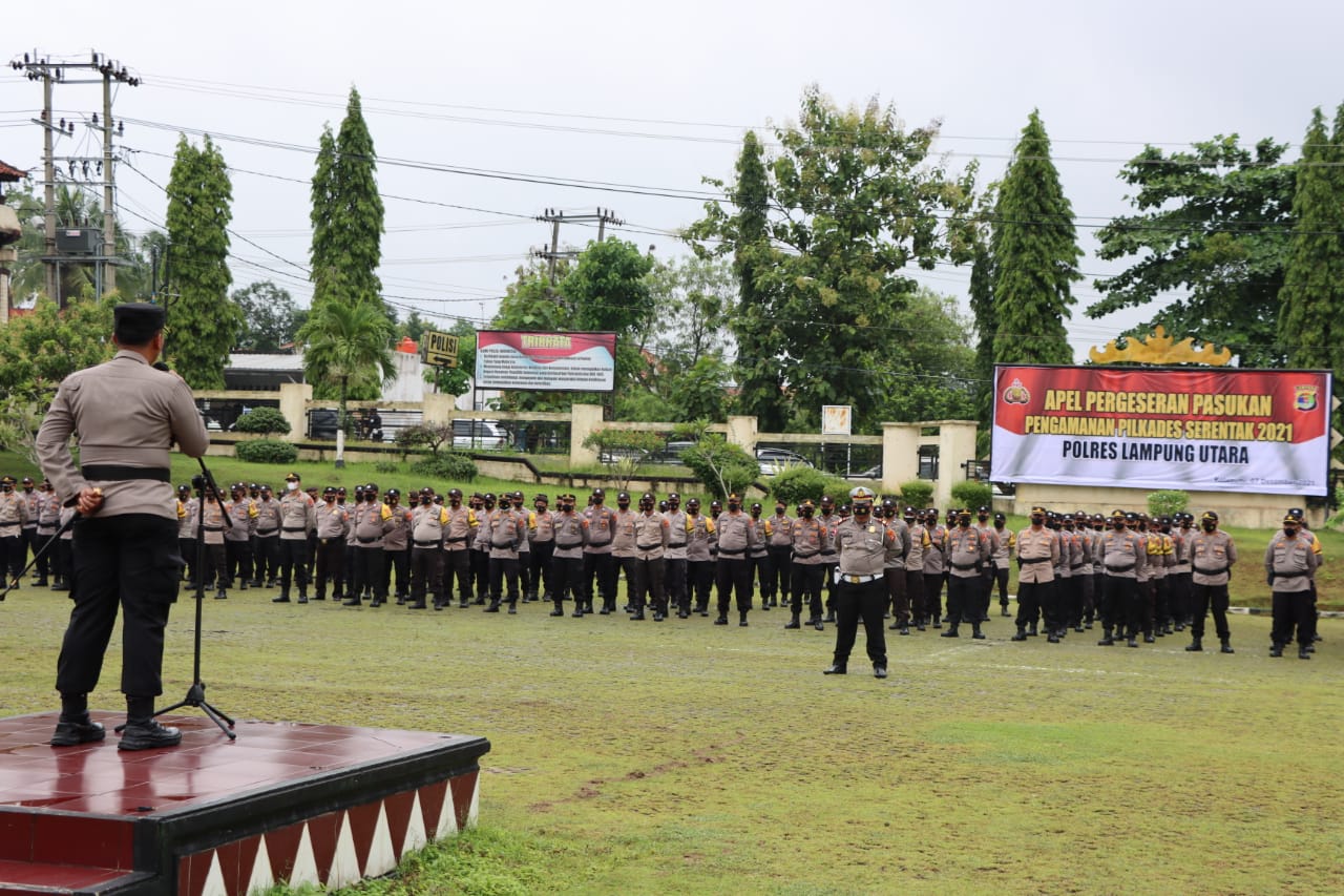 Kapolres Lampura AKBP Kurniawan Ismail, mengatakan untuk mengamankan Pilkades 2021 pihaknya menerjukan sebanyak 557 personil yang terdiri dari