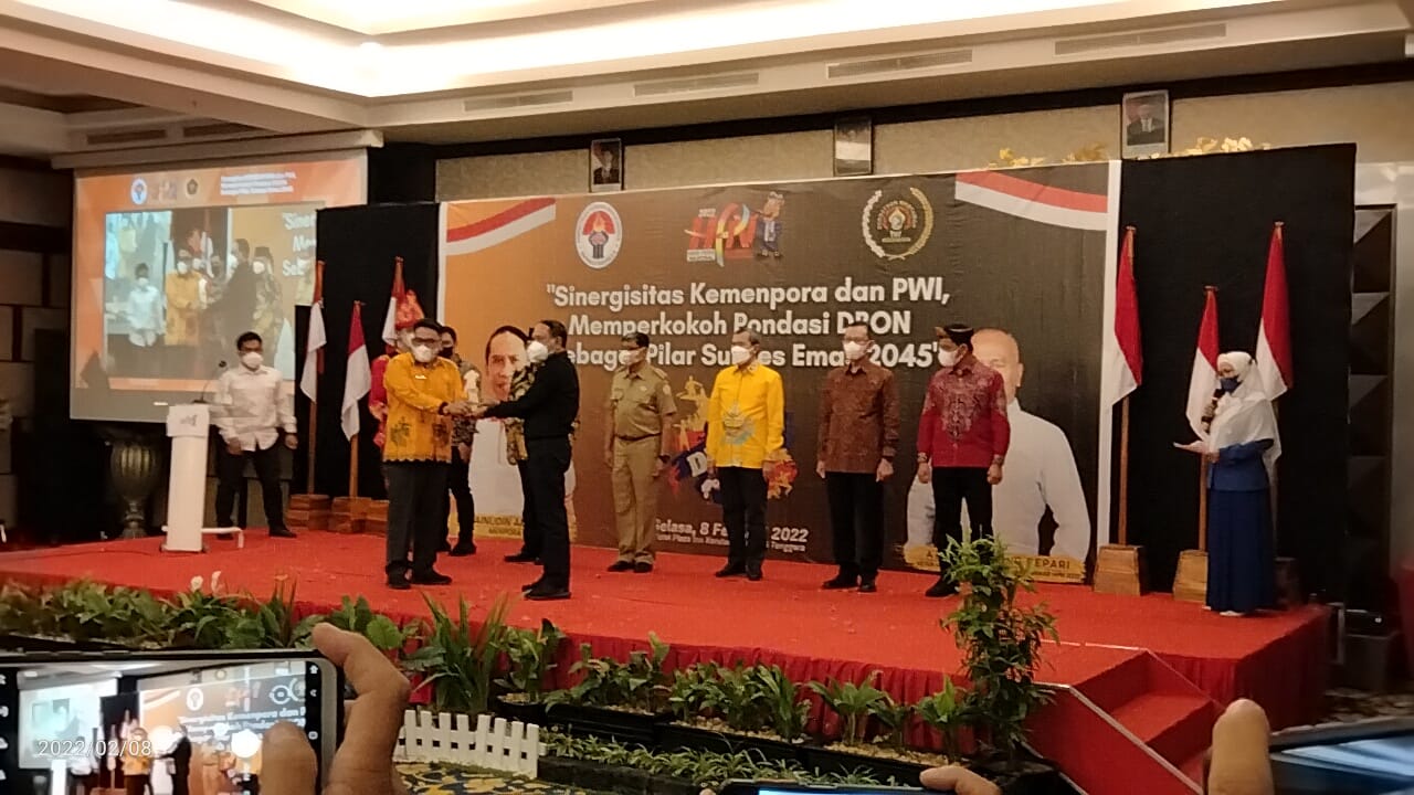KENDARI – Puncak acara penghargaan untuk penghargaan inisiator olahraga SIWO PWI Pusat, tiga tokoh Lampung mendapat penghargaan dari PWI Pusat yang diserahkan oleh Menpora, di ballroom hotel plaza in, Kendari (08/02/2022).