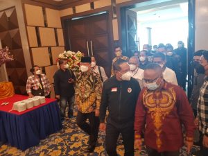 Caption : Menpora Zainudin Amali, saat memasuki ruang Ballroom Hotel Plaza Inn, Kendari – Sulawesi Tenggara.