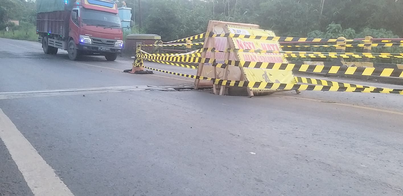 “Cukup besar mas lubangnya. kalau tidak hati – hati dapat terjadi kecelakaan. Setahu kami, ini belum lama diperbaiki maklum sering lewat,” ujar salah seorang pengendara sepeda motor, Sandi (45).