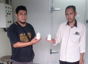 Tampak petugas dari Distanak Lampura saat melakukan pengambilan Vaksin PMK.