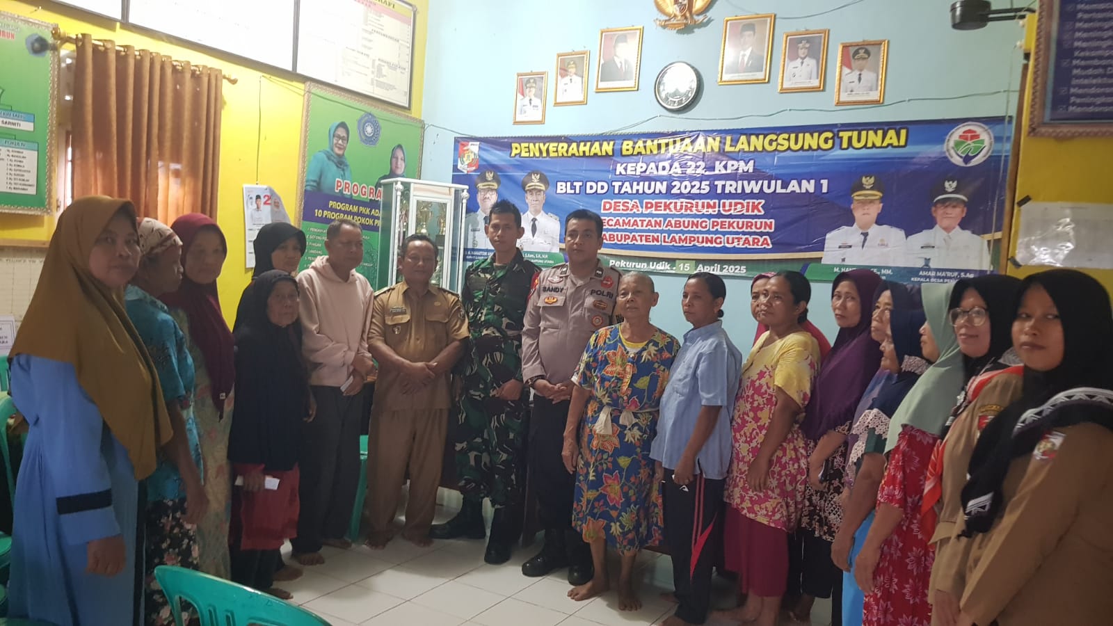 ABUNG PEKURUN – Sebanyak Rp 19.800.000 dana desa digelontorkan untuk 22 Keluarga Penerima Manfaat(KPM) Bantuan Langsung Tunai(BLT) Dana Desa Pekurun Udik Kecamatan Abung PekurunTahun 2025. KPM ini merupakan warga miskin dan tidak termasuk dalam penerima bantuan sosial seperti BPNT, PKH dan bantuan lainnya. Pembagian BLT DD triwulan pertama masing- masing KPM menerima Rp 900 Ribu dihadiri Ketua BPD, Babinkamtibmas Aipda Sandy Karamoy, Babinsa Sertu Suharyadi, dan tokoh masyarakat setempat, sekitar pukul 13.00 WIB, Selasa 14 April 2025.