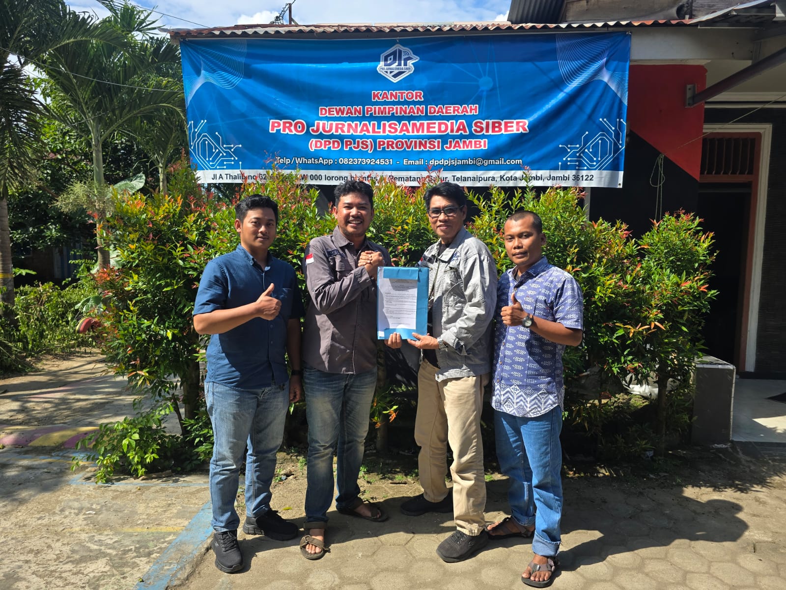 JAMBI – Ketua Umum DPP Pro Jurnalismedia Siber (PJS), Mahmud Marhaba, melakukan kunjungan kerja ke Kantor DPD PJS Provinsi Jambi, Jumat (18/4/2025).