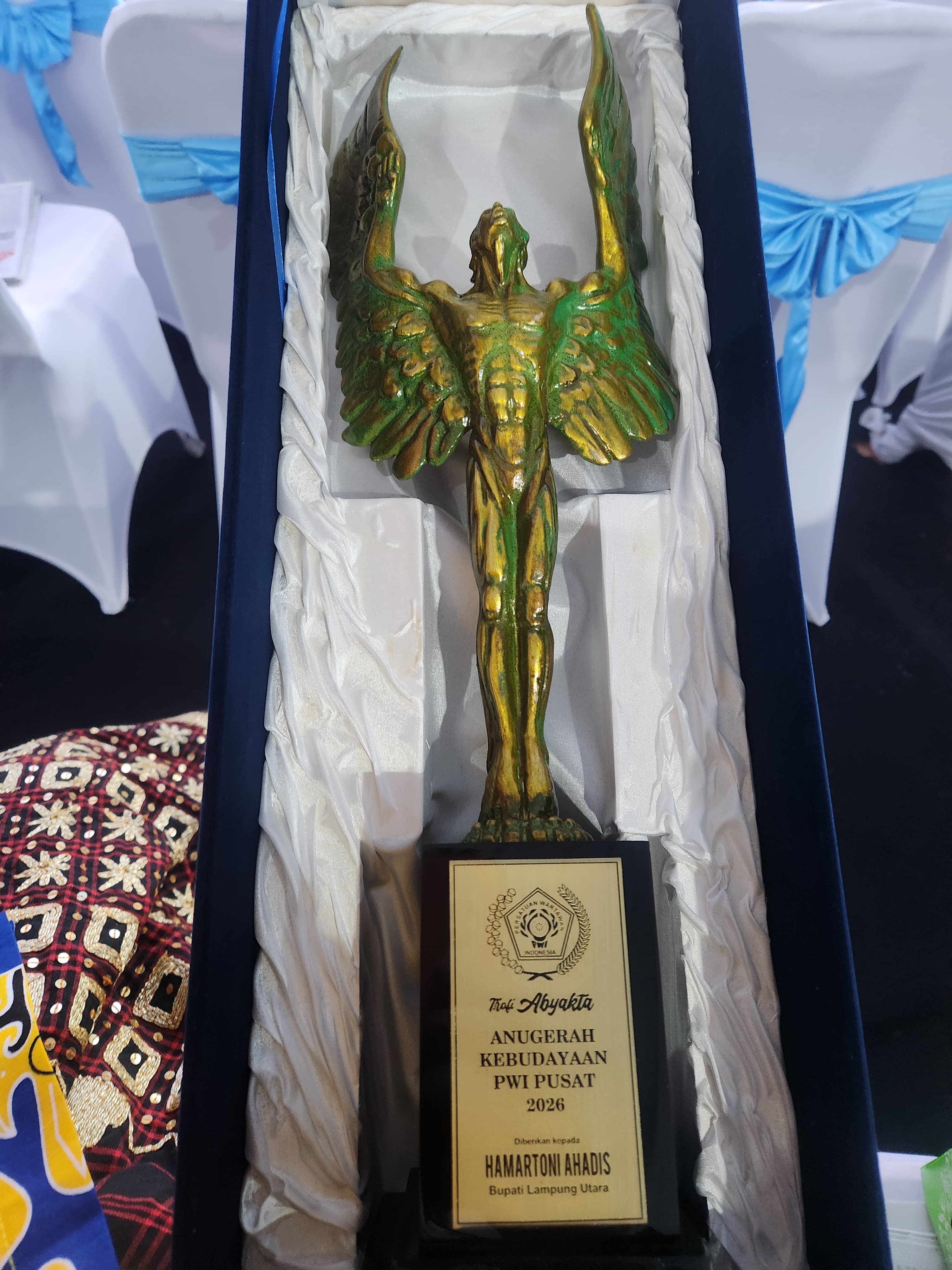 BANTEN- Trophy ABYAKTA menjadi kado terindah bagi Bupati Lampung Utara, Hamartoni Ahadis. Di  puncak peringatan Hari Pers Nasional (HPN) 9 Februari 2026 di Provinsi Banten merupakan hari kelahiran orang nomor satu di Lampung Utara.